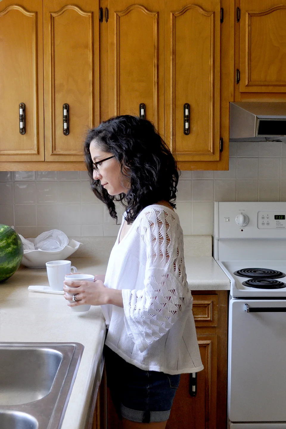 We are kicking this off with Rebecca Sibley: a beautiful soul both inside and out. She is an architect by trade and inspiration in the kitchen. She is also one of the amazing women, who participated in RSPNSV's upcoming "We are Woman" project, which is dropping in the next issue of Makers Movement magazine on July 5th! (Want to find out how to get your hands on a copy? Visit here.) Rebecca was so kind to invite us into her home and closet. She took the Moonlight Top and paired it with four of her favorite go-to's, serving up some summer perfection in complete Rebecca fashion...literally.