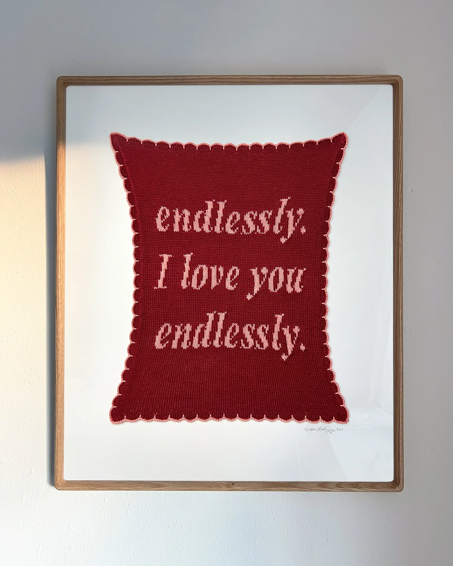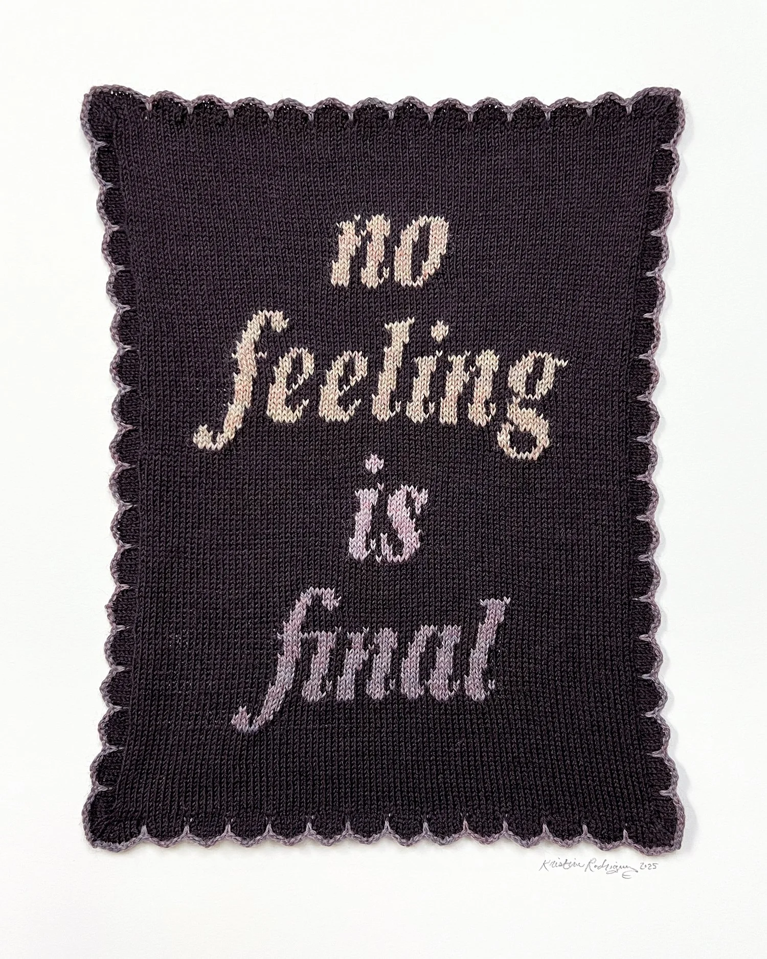There will be no reproduction prints of this work. Each knit - each token is it. Fitting for the sentiment.